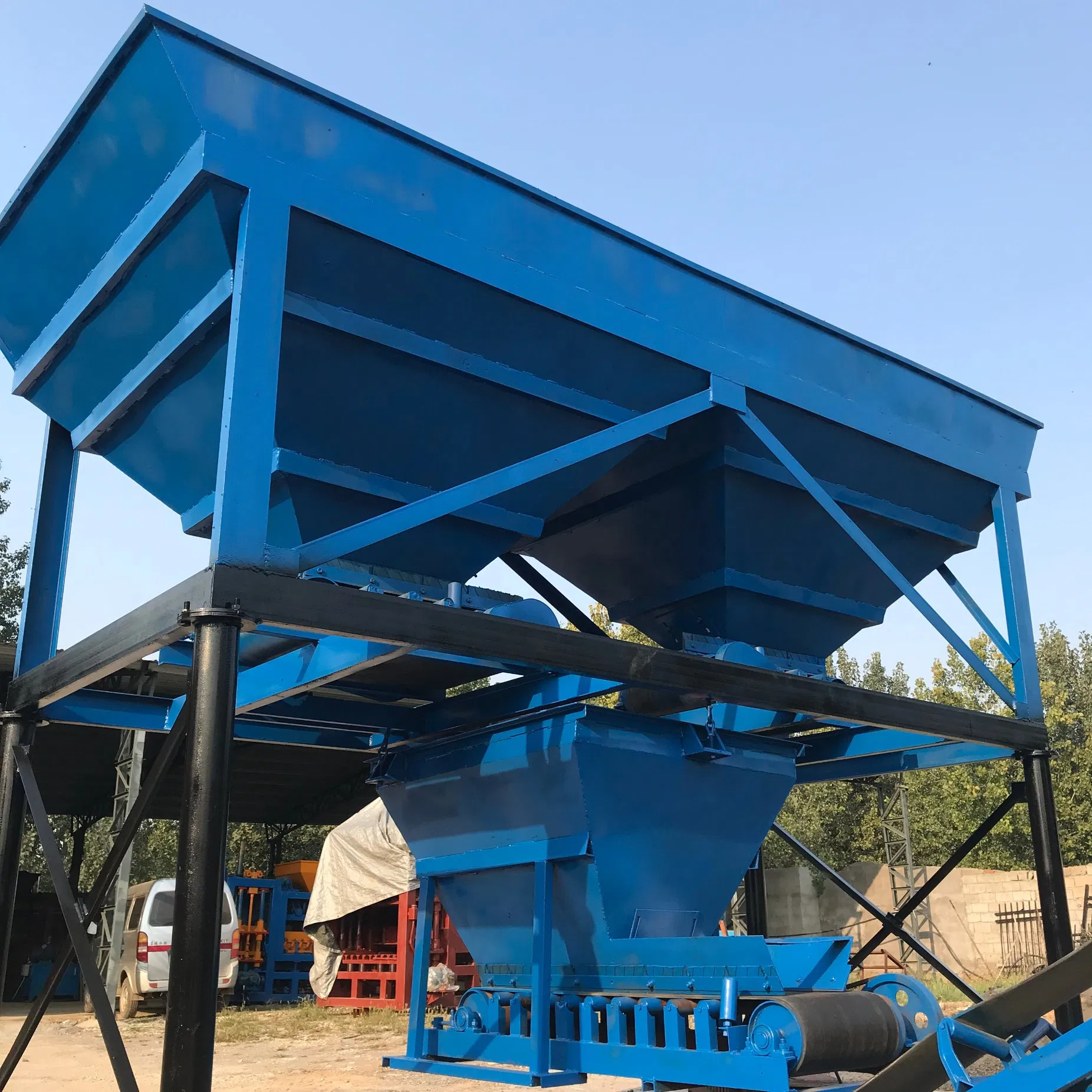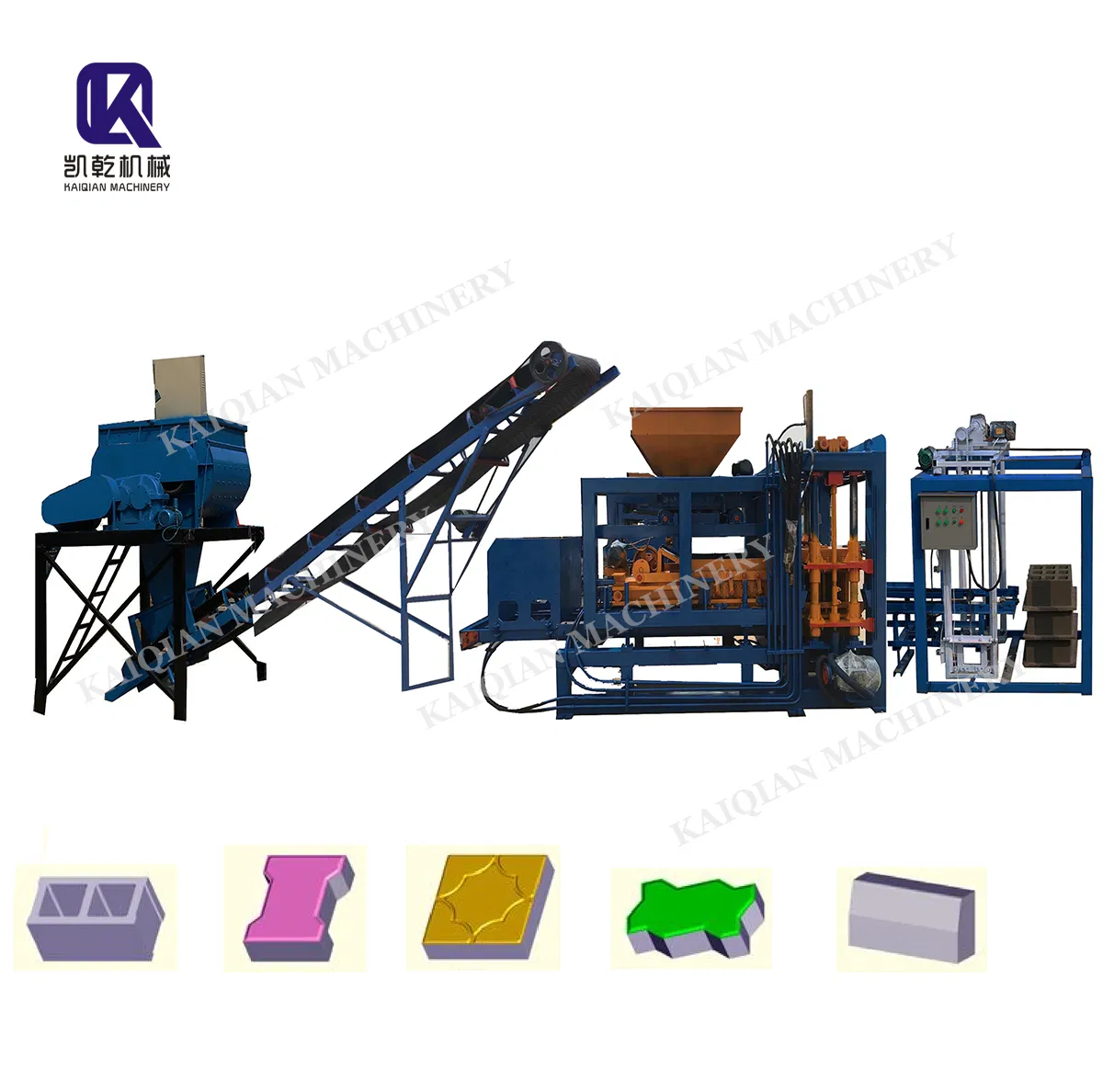 The production capacity depends on this forming machine and it is also the essential part of the whole production line. You can change moulds on this parts to make different shaps of blocks, bricks, colored-paving stones and curbs.