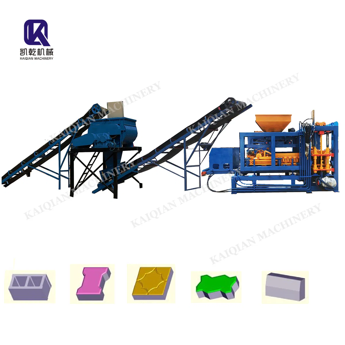 The production capacity depends on this forming machine and it is also the essential part of the whole production line. You can change moulds on this parts to make different shaps of blocks, bricks, colored-paving stones and curbs.