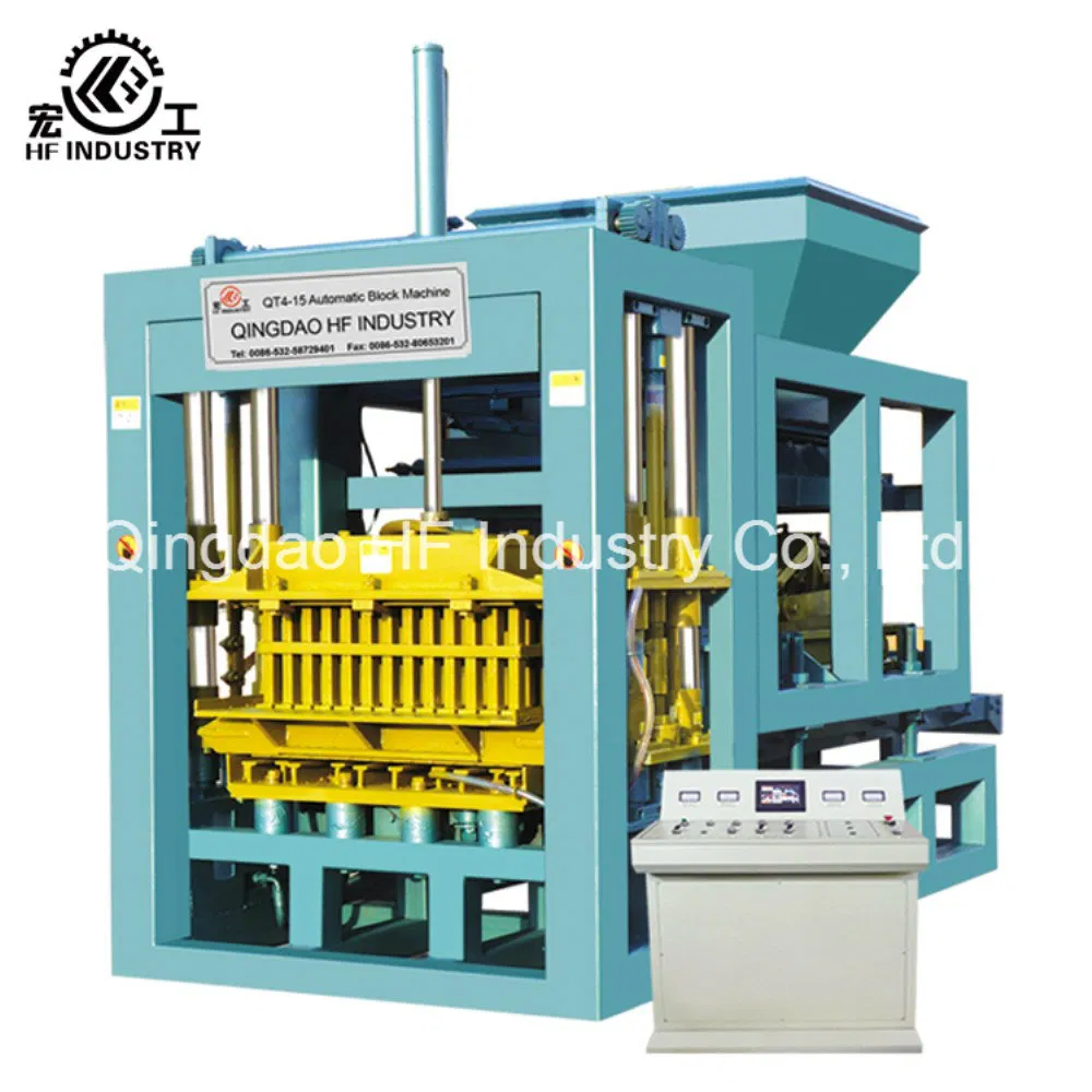 QT4-15 block making machine is our newest design machine and controlled by the PLC. And this machine is considered