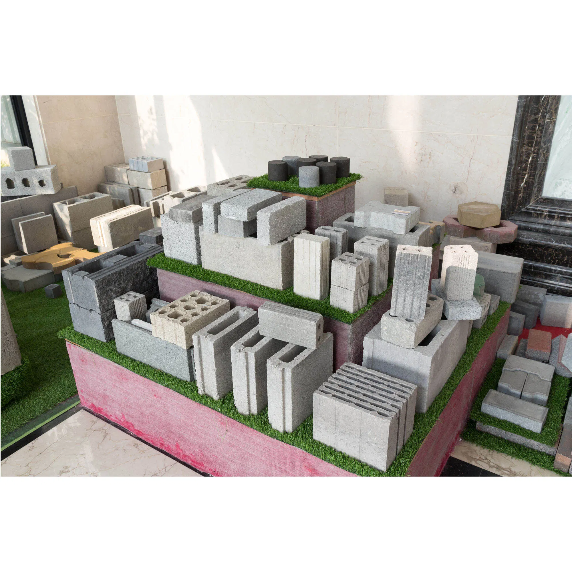 Applied Products: | concrete blocks, solid/hollow/cellular masonry products, paving stones with or without face mix, garden and landscaping products, slabs, edgers, kerbstones, grass blocks, slope blocks, interlocking blocks, etc. |