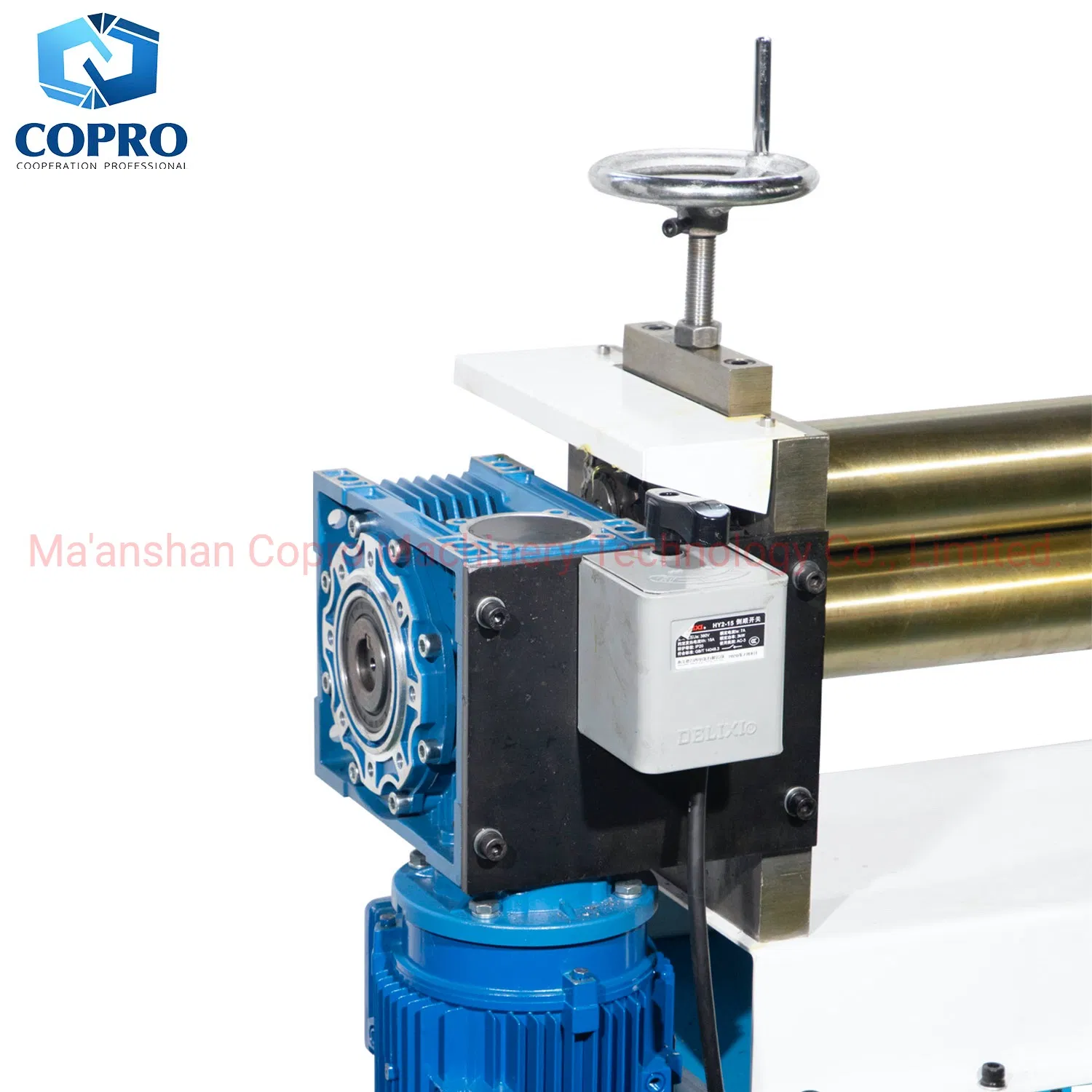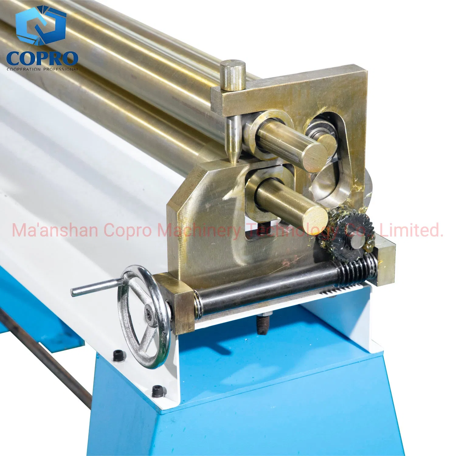 Per-bending function makes straight edges narrower, and it can even round small round pipe with diameter of 100mm. Combined with manual worm gear and eccentric wheel device the machine can quickly move side rollers up and down to improve efficiency.