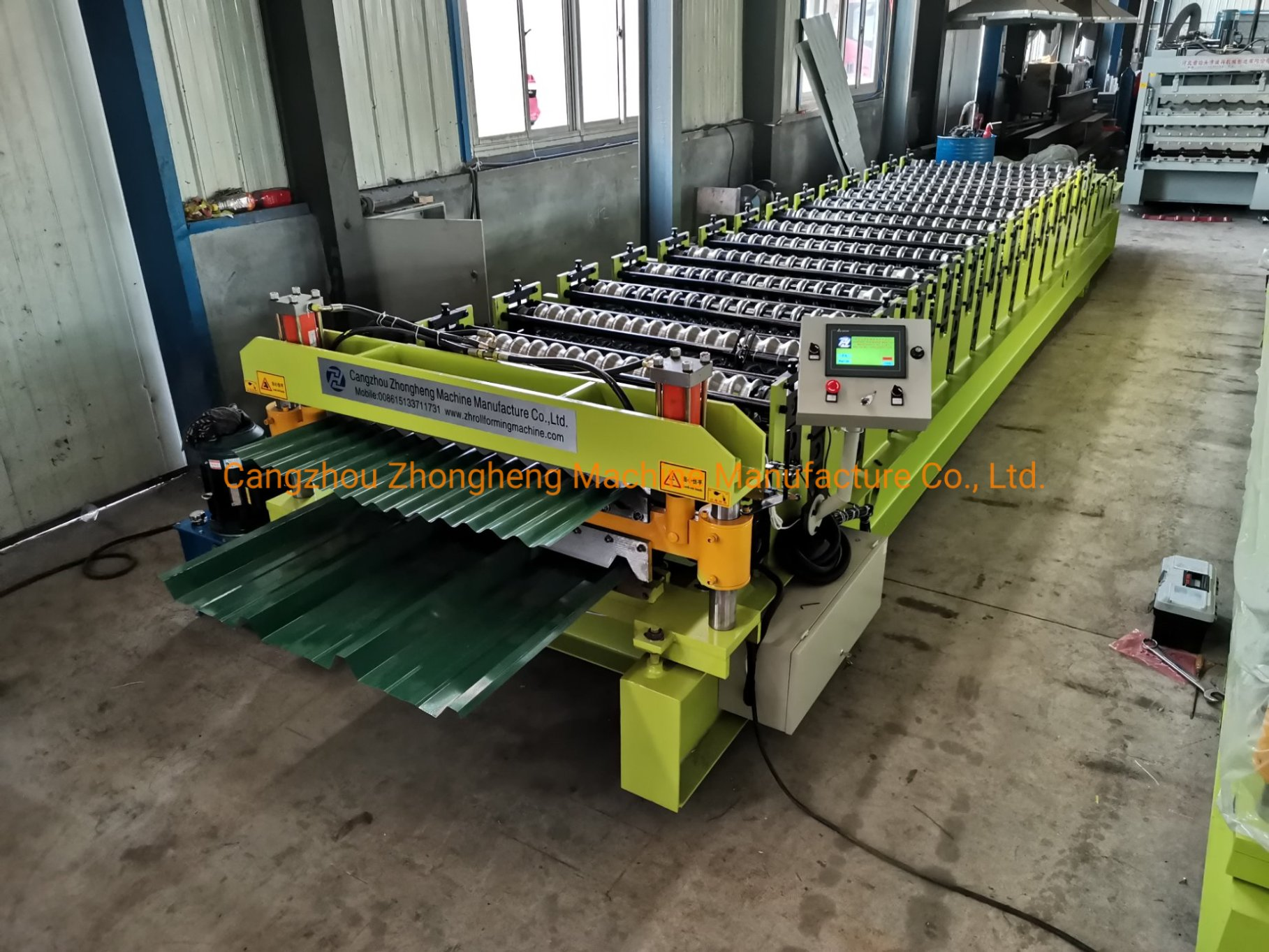 Tr4 Tr5 Double deck Roll Forming Machine for Peru Chile Market This is TR4 Roof panel Roll Forming Machine Ibr Metal Roofing Sheet Making Machine , suitable for PPGI coils , the finished sheet usually worked for roof and wall panel . It has beautiful water wave design , now is widely used in all ove......