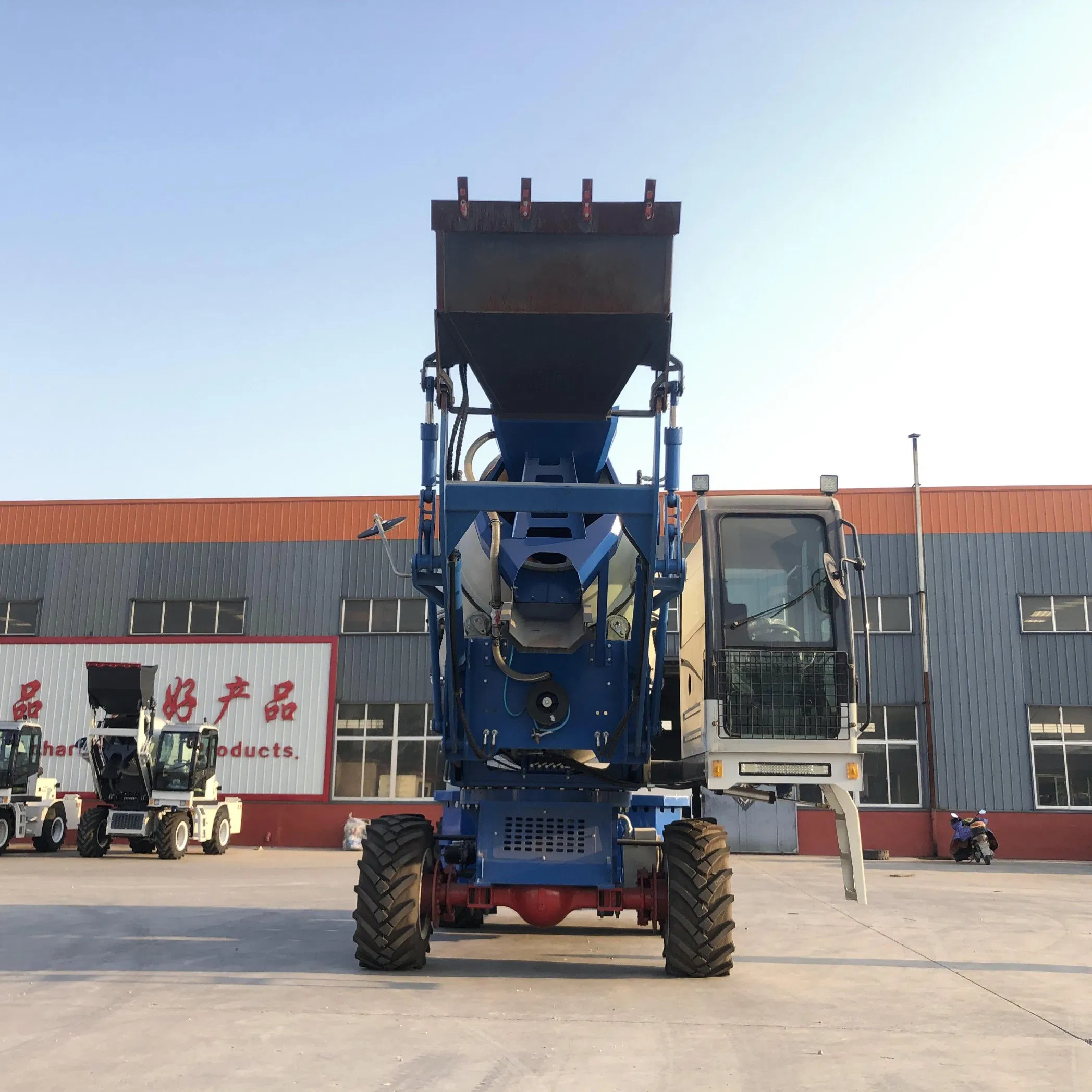 2. Multifunction: The self loading concrete mixer replaces the functions of wheel loaders, cement mixers, transporters, generator sets, etc. Multi-angle 270-degree rotary discharge is suitable for various regional environments.