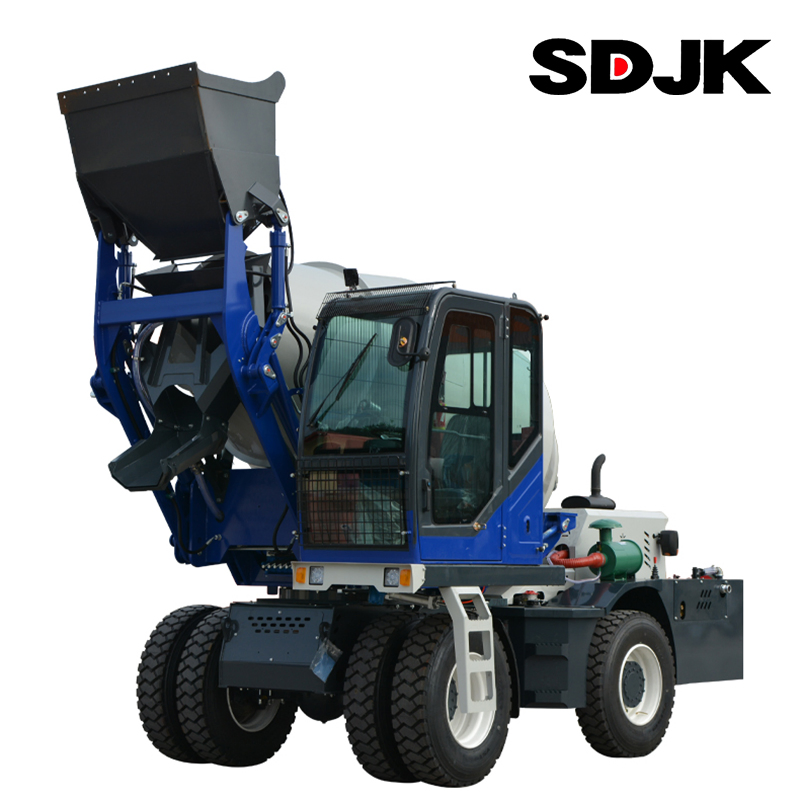 1.JKM-40 Self Loading Concrete Mixer Truck is a integration of mixer and wheel loader. It can automatically load, measure, mix and discharge concrete mixture.