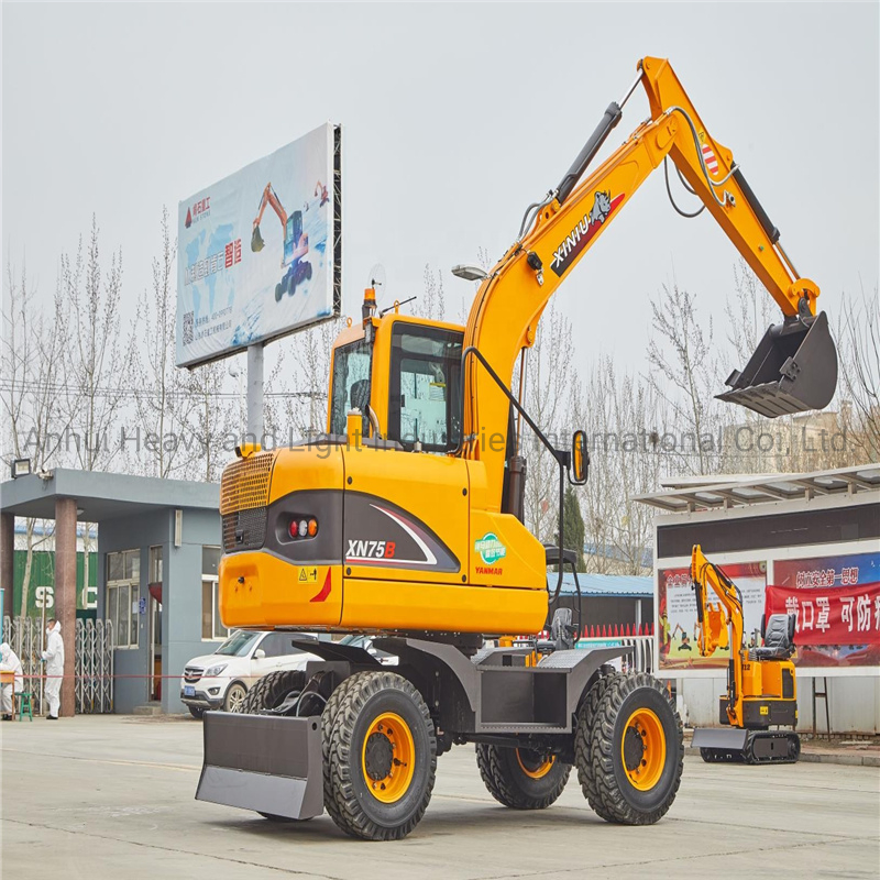 Product DescriptionXN75B Rhinoceros 6 ton Wheel Excavator 6230kg 5 tonne excavator1. Adopting world famous brand YANMARengine, with strong driving force, low noise, low oil consumption, andmore reliable.2. Adopting energy saving hydraulic system, main hydraulic parts using original world famous bran......