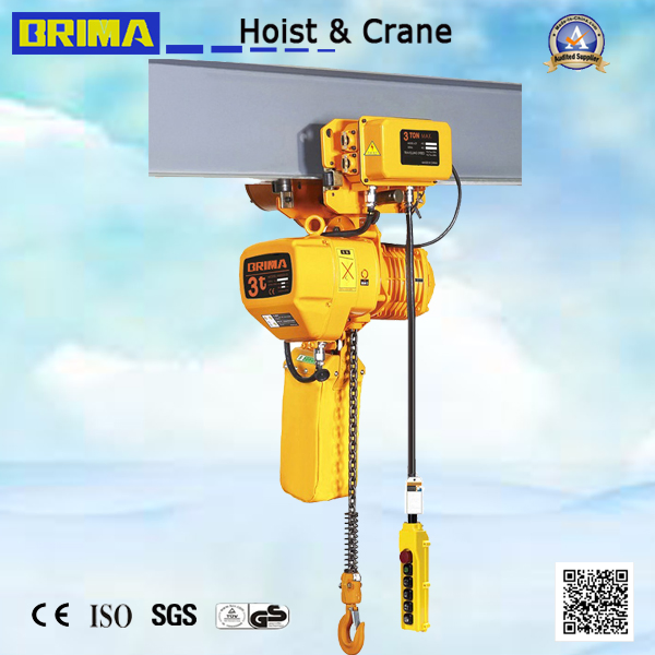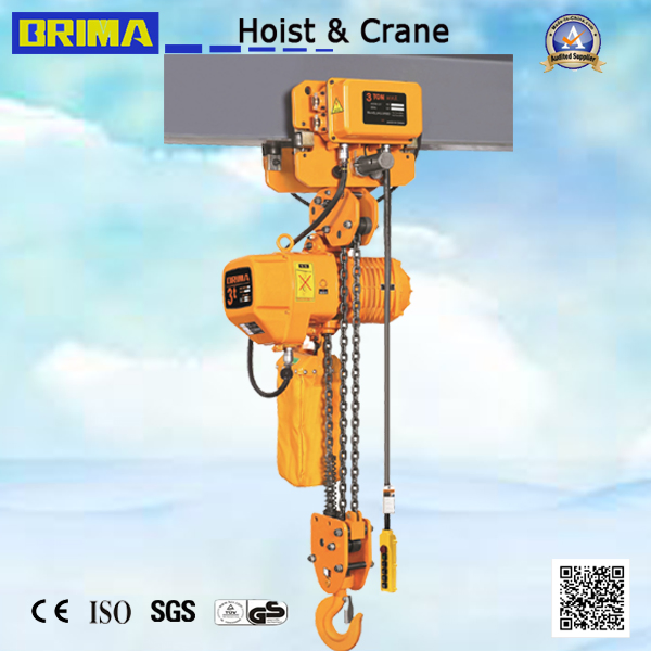 3t 2 Falls Double Speed Electric Chain Hoist with Manual Trolley Overhead Crane