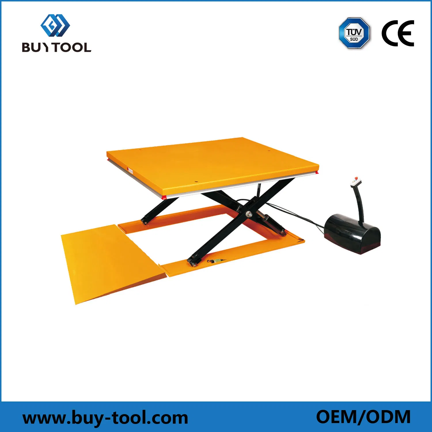 Heavy duty design with larger platform.Loading ramp is a standard equipment.Oiless bushings on pivot points.These tables achieve a low closed height, eliminating the need for a pit installation.They are manufactured to all European safety standards including EN1570: 1999.Remote power pack with pedes......