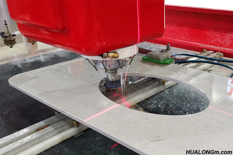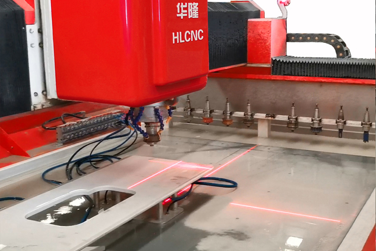 3 axes CNC stone processing center with the model of HLCNC3319, is a professional countertop making and polishing machine. The max tools which can be hung are 20 pcs and because of mechanical main spindle used, the cutting and polishing speed is faster than others, and the finished processing products are excellent both inside and outside edges.
